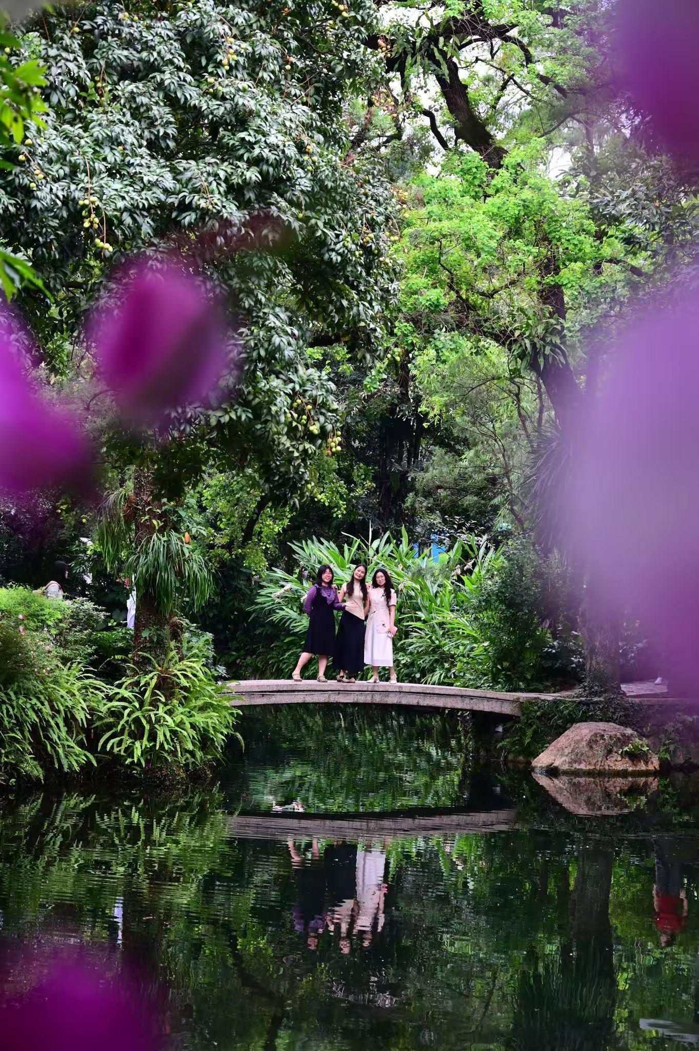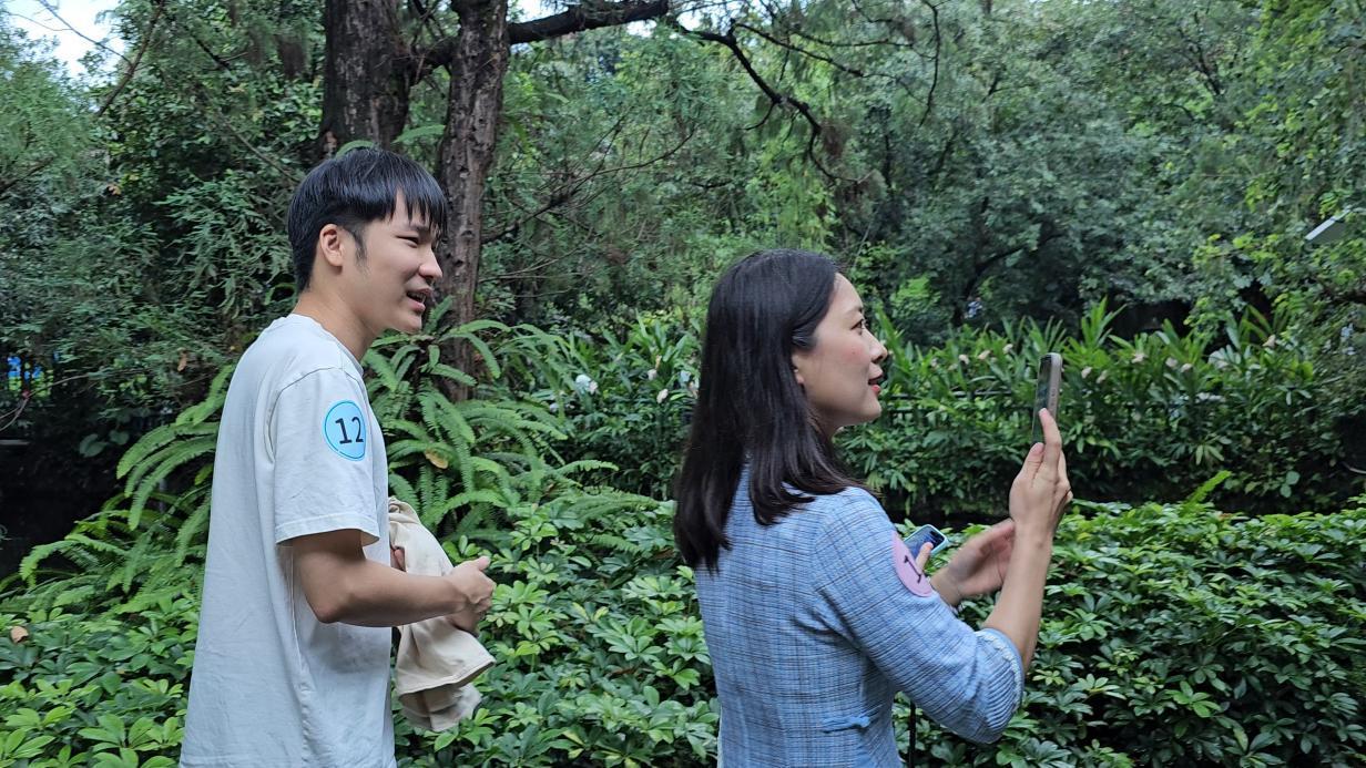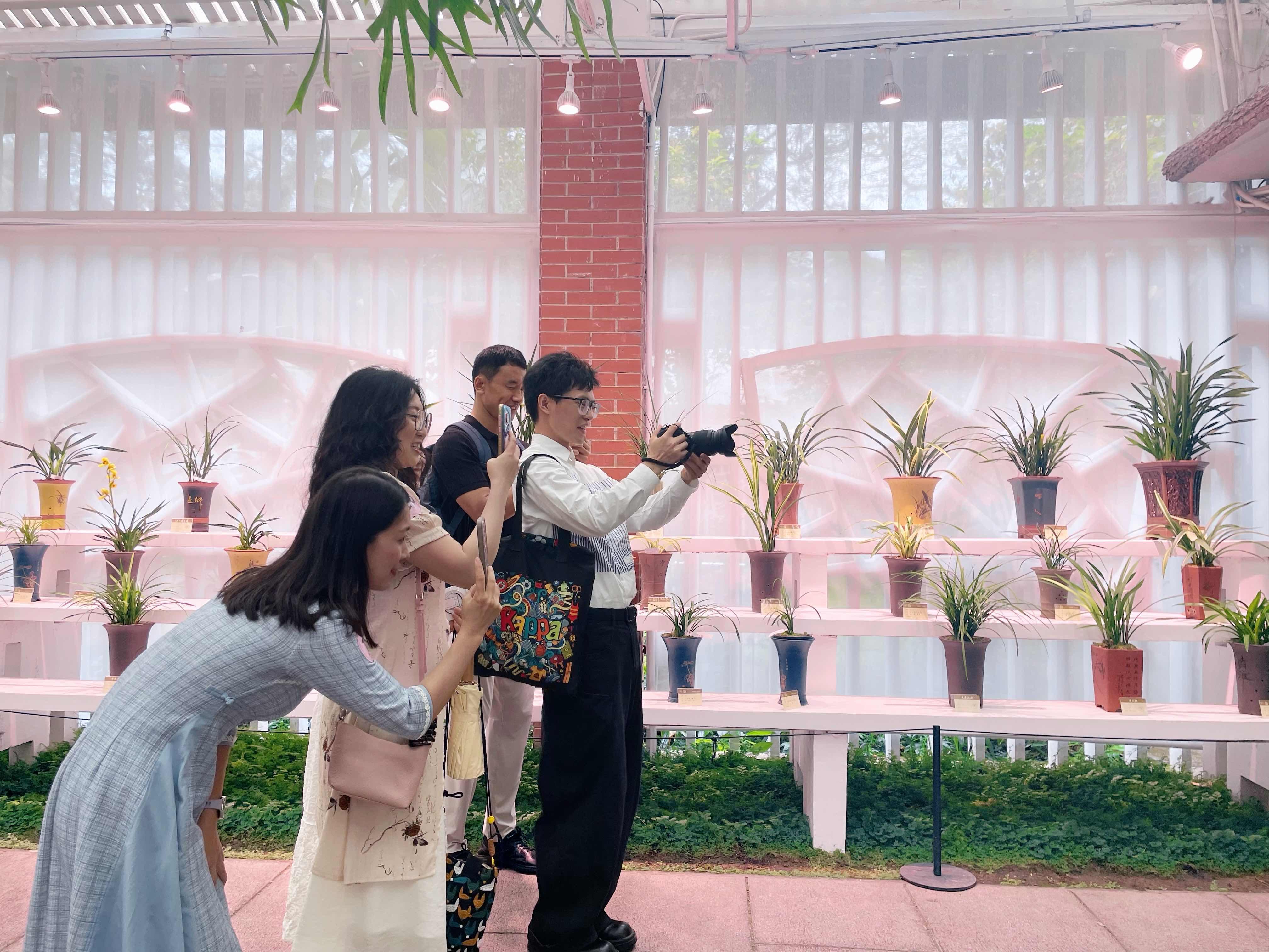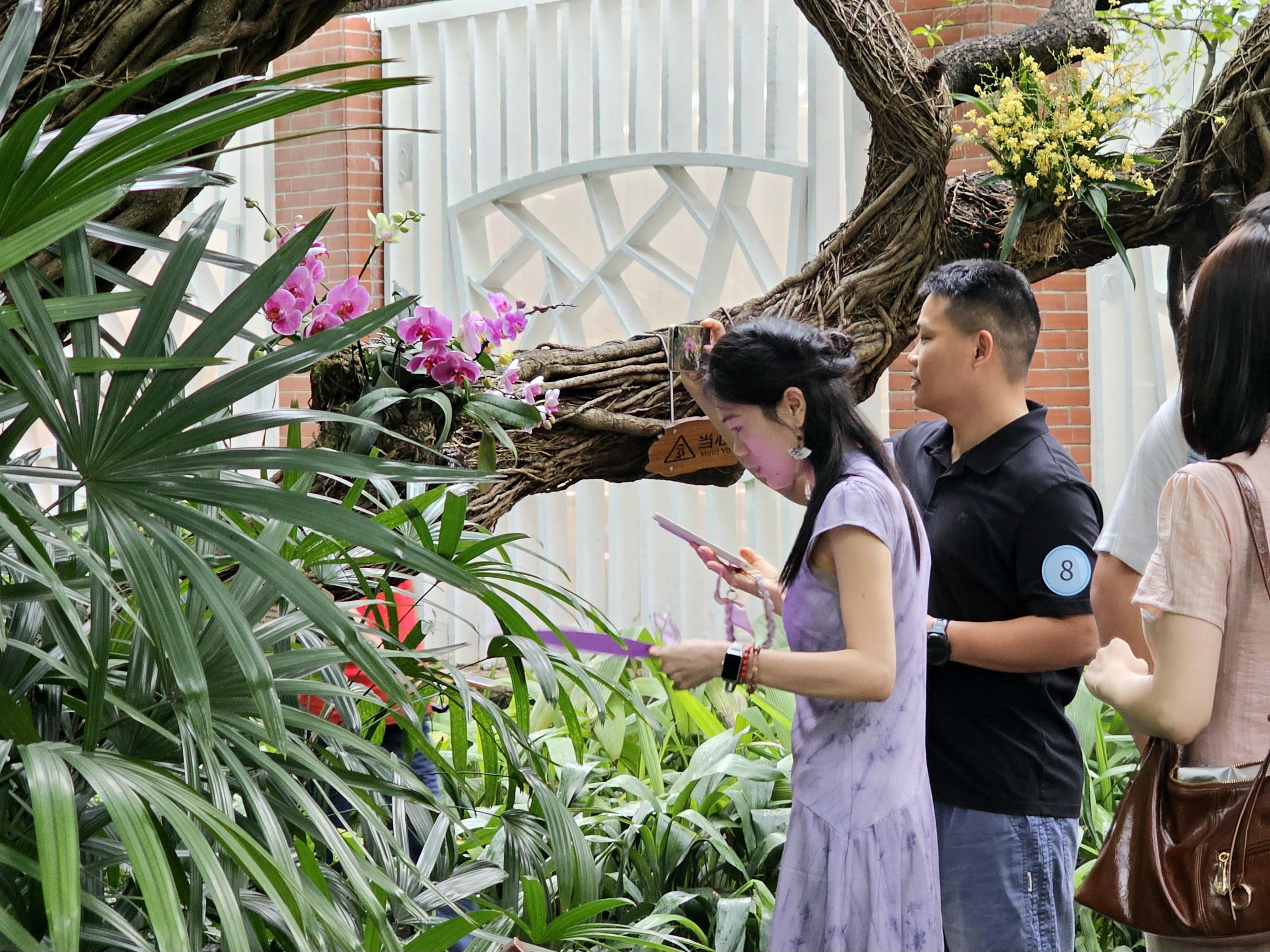 17日下午,30余名单身职工前往兰圃实景实践。他们结伴穿梭在错落有致的月洞门、曲径回廊间,兰香萦绕,水光相映,这里既是天然摄影棚,也是静谧交友空间。青年男女共制摄影计划,进行兰圃COLOR WALK,互为摄影师和模特,探索岭南文化底蕴,将摄影艺术、青年社交与文化雅集有机融合。