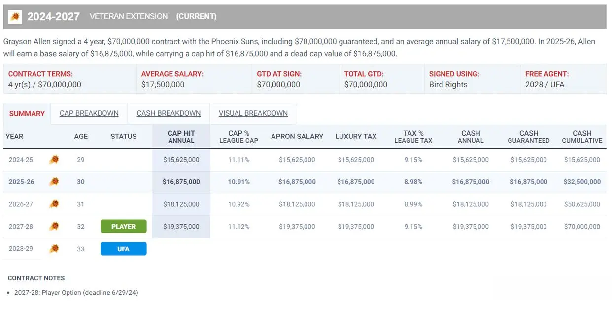 阿伦这份合同寻牛堂,27-18赛季是球员选项,他的均薪只有1750万,说实话真的不贵,这个级别的投手还有防守,很多季后赛球队都需要。