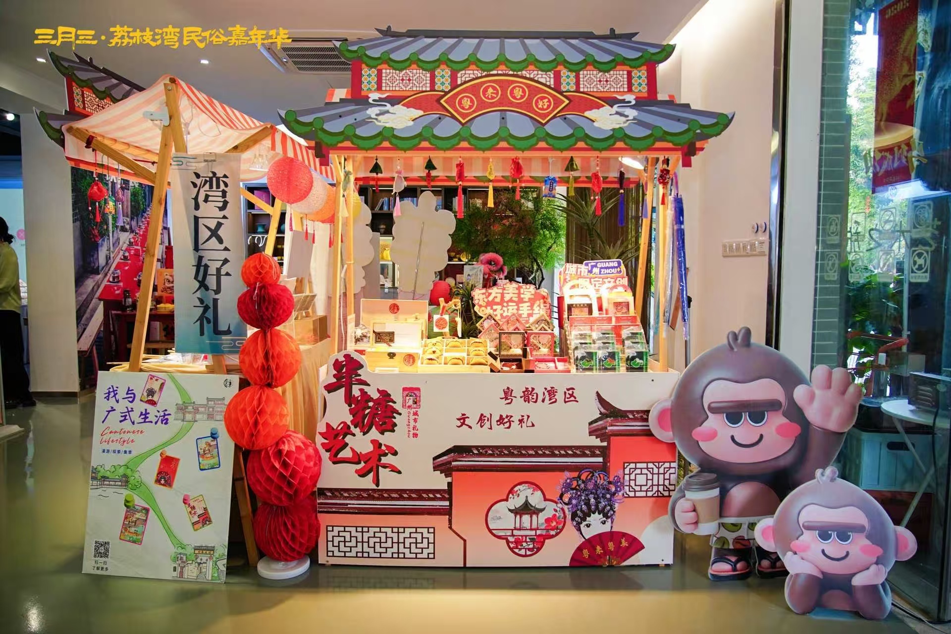 集满印章后可兑换神秘节庆礼品。泮塘五约的主理人大多是本地年轻人,他们用自己的方式讲述泮塘故事。一位主理人说:“我们从小就听家里老人讲三月三的习俗,现在通过店铺活动把这些习俗传递给游客,很有意思。”