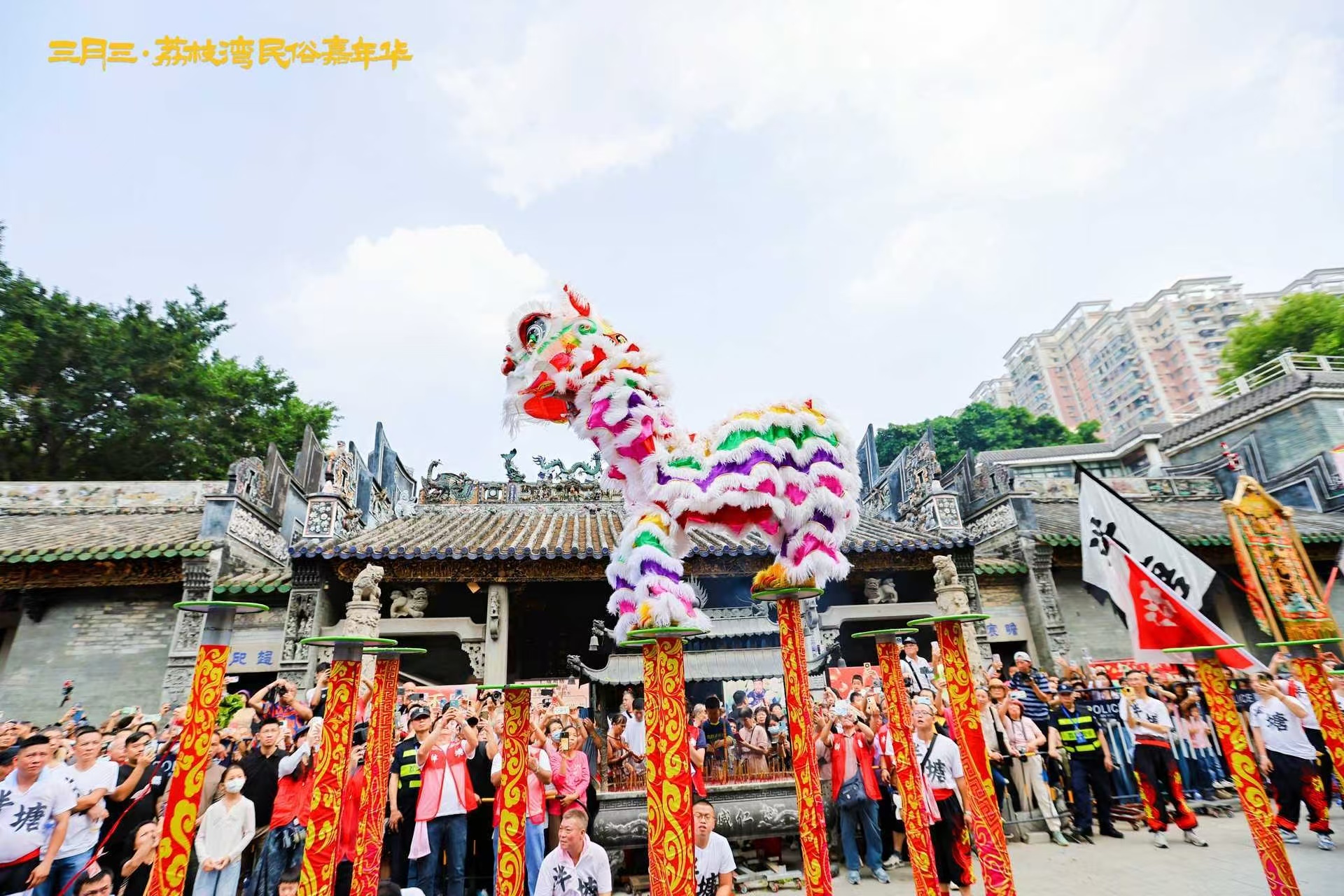 泮塘村民舞龙舞狮、游乡探亲;市民游客净手、放风筝、对诗、寻宝、品老字号美食,千年上巳节的民间习俗,在西关水岸间与当代生活交织共融。
