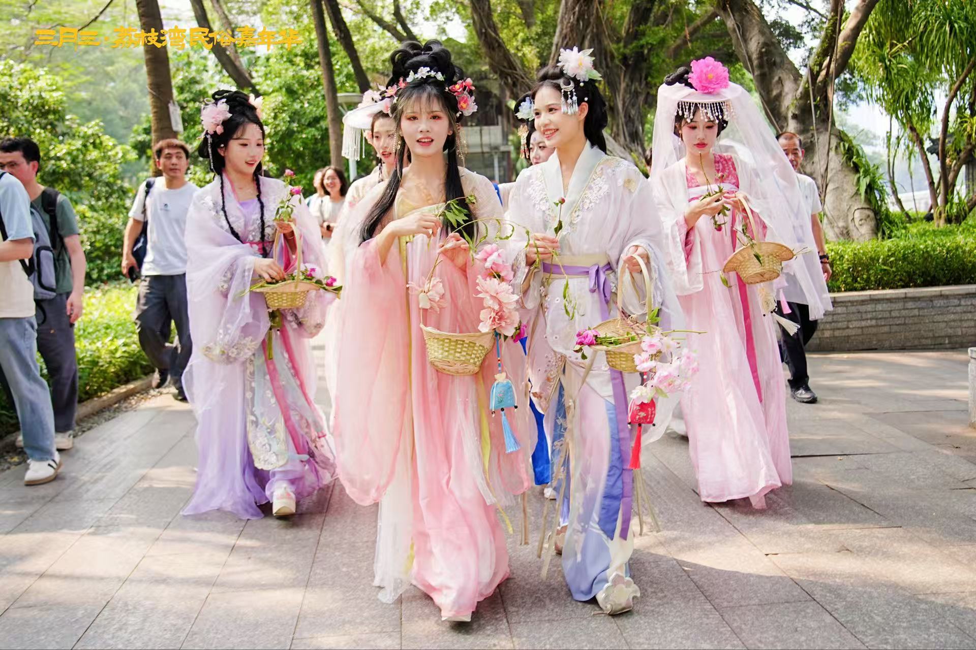 第十六届“荔枝湾·新西关”民俗文化活动之“三月三·荔枝湾”活动在西关永庆坊旅游区拉开帷幕。本次活动以“踏春而行,上巳相约”为主题,从17日持续至19日。其中,4月19日农历三月初三当天,祈福踏青、太公分猪肉、流水席等传统风俗重现西关。